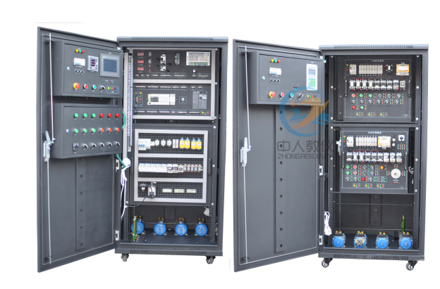 制技術(shù)”等多門課程的實(shí)訓(xùn)。裝置資源開放,可充分培養(yǎng)學(xué)生的實(shí)際動(dòng)手能力,適合當(dāng)今教育教學(xué)中的實(shí)訓(xùn)訓(xùn)練。本裝置采用用標(biāo)準(zhǔn)配電柜為主體柜、雙面結(jié)構(gòu),包含如下資源:電源控制、三相交流電源,直流電源,勵(lì)磁電源、電樞電源、測量儀表、可編程控制器(三菱系列)、模擬量模塊、編碼器、彩色觸摸屏、變頻器(三菱系列)、控制軟件、交流接觸器、按鈕、指示燈、時(shí)間繼電器、行程開關(guān)、中間繼電器、三相異步電機(jī)、直流電機(jī),機(jī)床智能考核等。適用于大學(xué)、??圃盒<案黝惵殬I(yè)教育培訓(xùn)機(jī)構(gòu)的實(shí)訓(xùn)教學(xué)、考核鑒定。